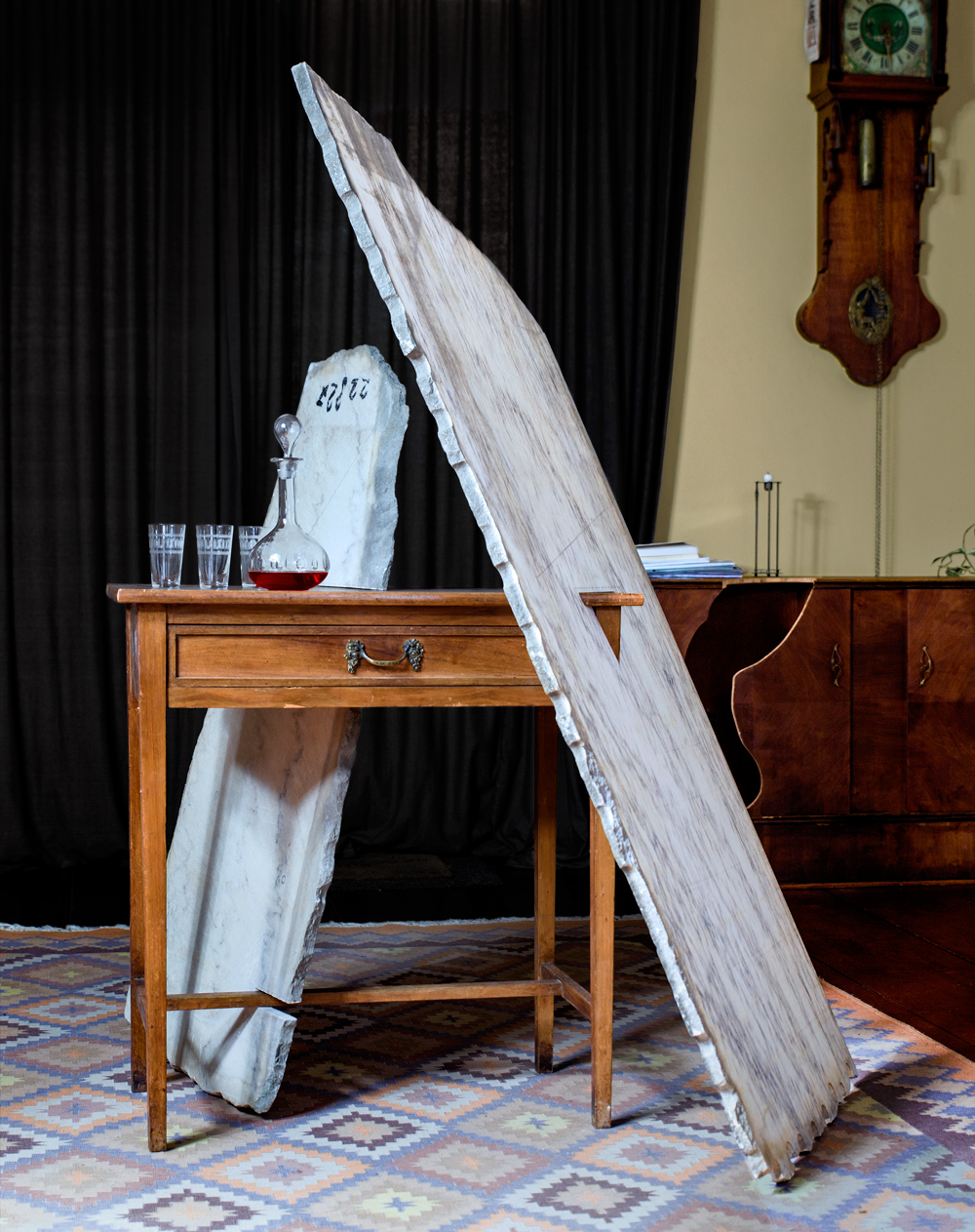MARSOver die laatste expo: ‘Het werk waarmee ik aan Beelden in Leiden deelnam, was oorspronkelijk veel groter. Het zou veel te zwaar zou worden om naar Nederland te vervoeren en kon ook niet veilig in de openbare ruimte staan. Uiteindelijk gebruikte ik slechts de helft van het materiaal. Met een deel van de marmeren platen die ik niet gebruikte, heb ik een nieuw werk gemaakt voor de tentoonstelling bij Kunstverein Springhornhof.’